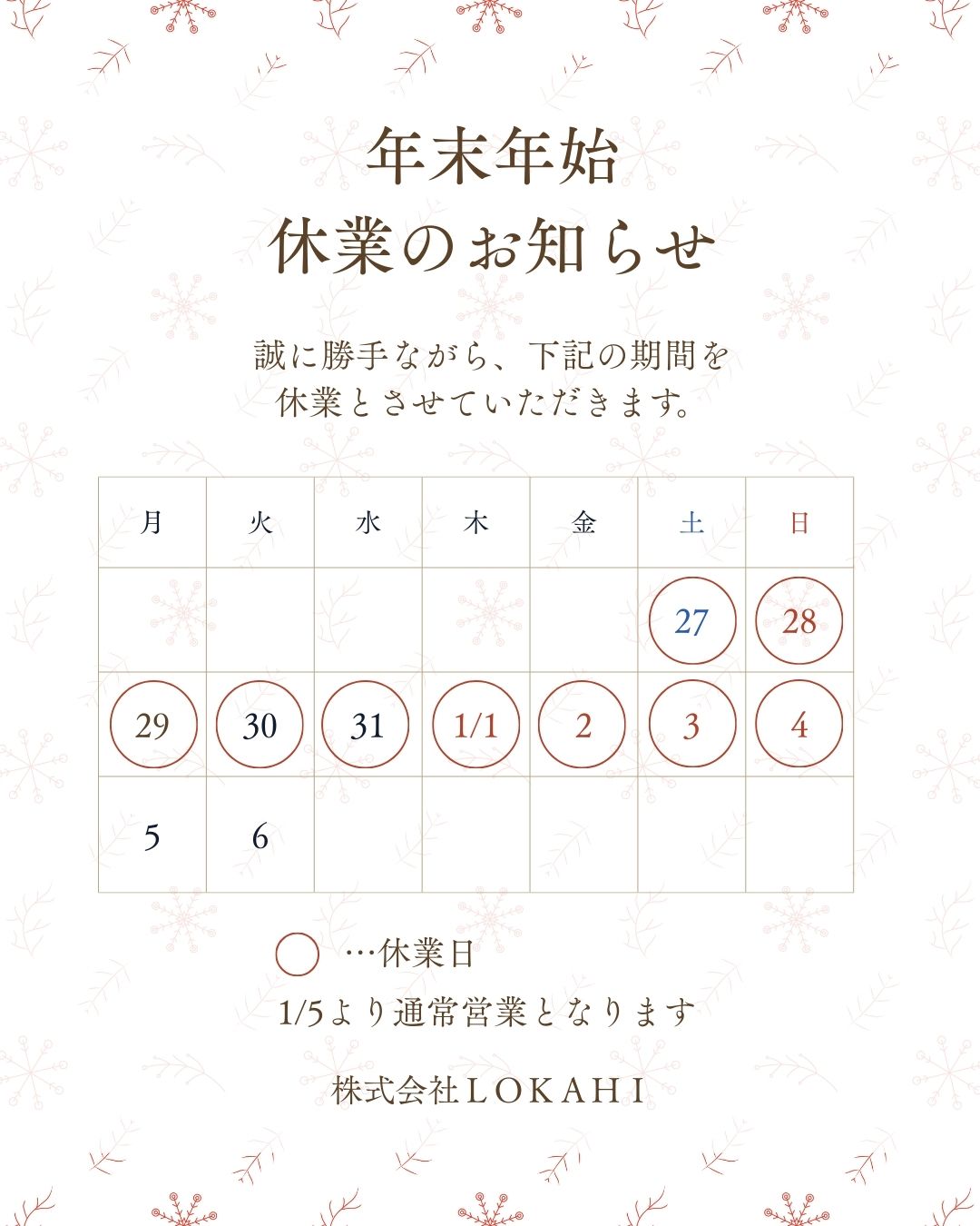 4. 冬季休業のお知らせ
